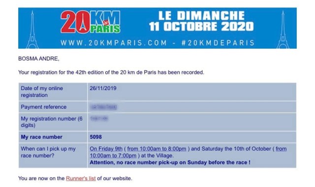 Na jaren van verlangen heb ik me vandaag dan eindelijk ingeschreven voor de 20 kilometer van Parijs.