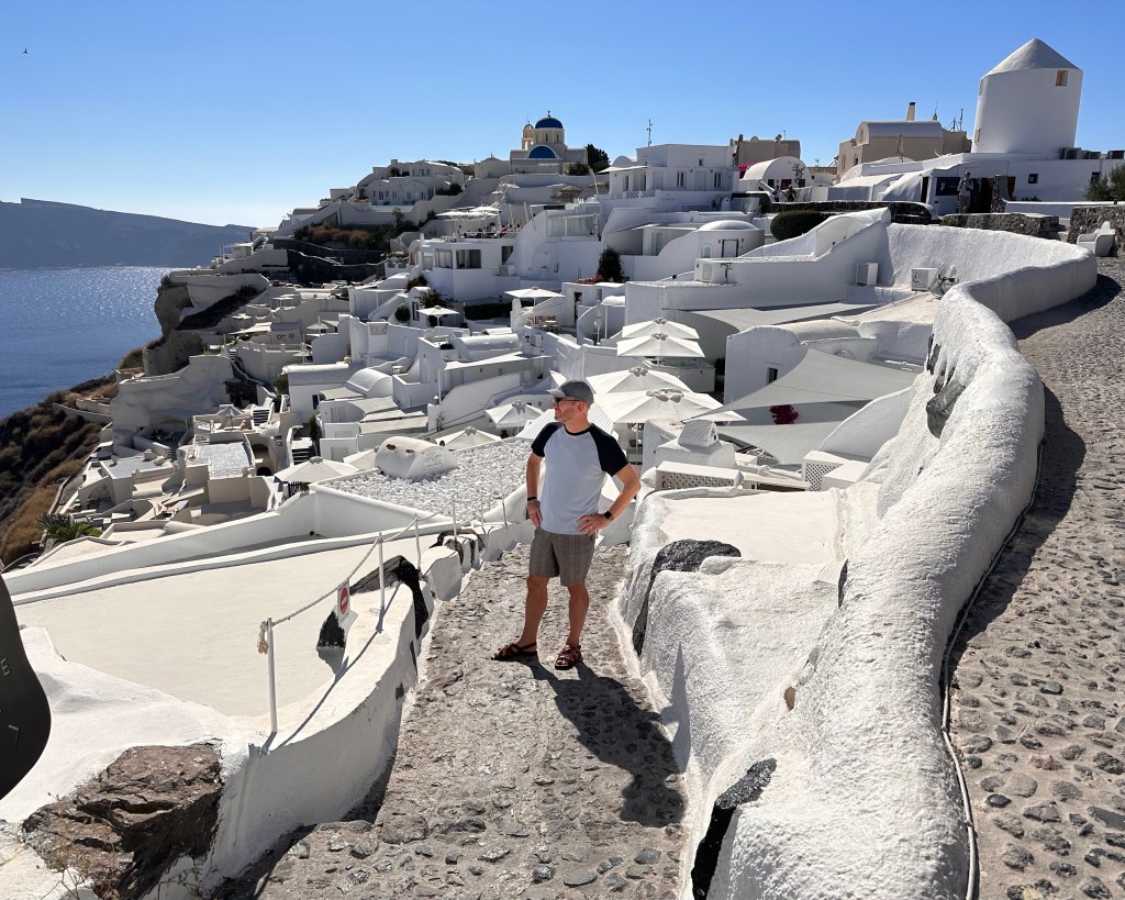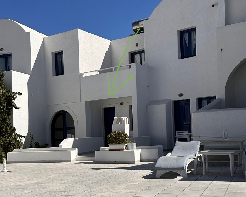 Nog sneller waren we in een soort van privébusje naar Oia gebracht, waar we een korte rondleiding door ons appartement kregen. Het is er niet groot of heel luxe, maar heel prima om er de komende acht dagen door te brengen. De omgeving is inmiddels verkend en de nodige boodschappen zijn gehaald en in de vroege avond de nodige (toeristische) foto’s geschoten om daarna heerlijk uiteten te zijn geweest. De eerste vakantiedag zit er bijna op. We drinken nog een wijntje en dan naar bed. We waren tenslotte vanmorgen al heel vroeg op.