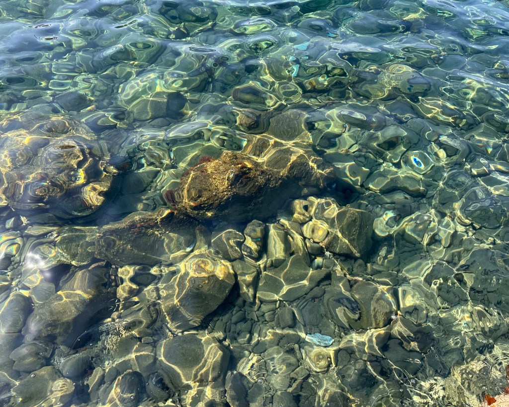 De afdaling begint vlak naast restaurant Apsithia, waar we van de week al hadden geluncht en uiteten zijn geweest. Ik heb ze zelf niet geteld, maar het pad bestaat uit 300+ treden, waar nu zelfs de ezels niet meer lopen (en dat is een goede zaak!). Na ruim een kwartier waren we uiteindelijk beneden. Ook hier stond weer een blauwwitte kerk als een soort van welkomstgeschenk. Het eiland heeft verdomme bijna meer kerken dan toeristen. Aan het water was het goed vertoeven, een lichte zeebries gaf ons wat verkoeling.